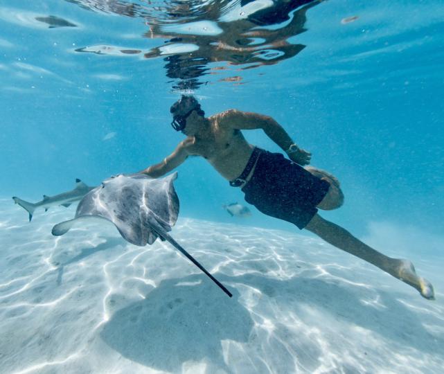 Baignade avec les poissons, tortues et raies...